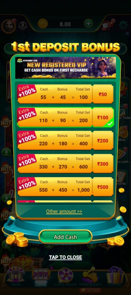 Joy Rummy me paisa kaise add kare?